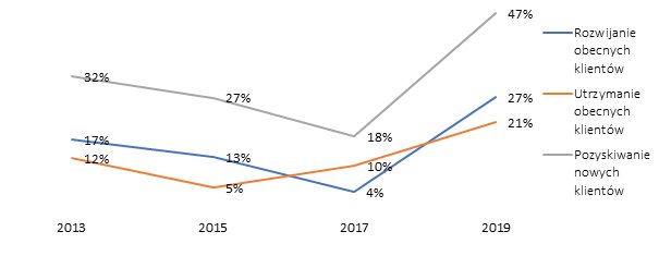 Wykres. Wyzwania sprzedażowe dużych firm i korporacji w latach 2013‑2019.