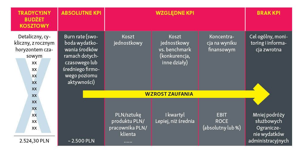 Wyeliminowanie tradycyjnego podejścia do budżetowania daje świeże spojrzenie na zarządzanie kosztami i inwestycjami, wolne od narzuconych procesem budżetowym kajdan i zobowiązań. Koszt oraz wydatek przestają być balastem (poddawanym ciągłym obniżkom i bezdusznej optymalizacji), zamiast tego zaczynają być postrzegane jako nośnik wartości dodanej. W tym rozumieniu koszt i wydatek będą zawsze dobre, o ile będą oznaczały rozwój i większą wartość firmy.