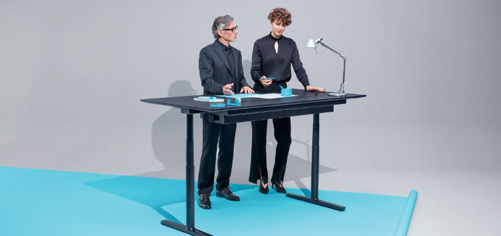 Jednym z pionierów tego rozwiązania jest austriacka firma Bene, od prawie 230 lat dostarczająca nowoczesne systemy mebli i produkty wyposażenia wnętrz do biur na całym świecie. Oferowane przez Bene biurko LEVEL LIFT jest wyposażone w elektryczną regulację wysokości w zakresie od 64 do 130 cm. Dzięki tej technologii zmiana pozycji ciała odbywa się płynnie i automatycznie, nie zaburzając pracy. Biurko zaprojektowane przez Christiana Hornera (dostępne w wersji pojedynczej i podwójnej) zapewnia użytkownikom niezbędną dawkę ruchu, umożliwiając odciążenie kręgosłupa i utrzymanie ciała w dobrej kondycji. Dzięki współpracy Bene z niemiecką firmą technologiczną LINAK meble można dodatkowo wyposażyć w kontrolery ruchu, które umożliwiają płynne sterowanie ruchem biurek. Pomagają też wykształcić prawidłowe nawyki w pracy, ponieważ przypominają o konieczności zmiany pozycji po każdej godzinie spędzonej w pozycji siedzącej.