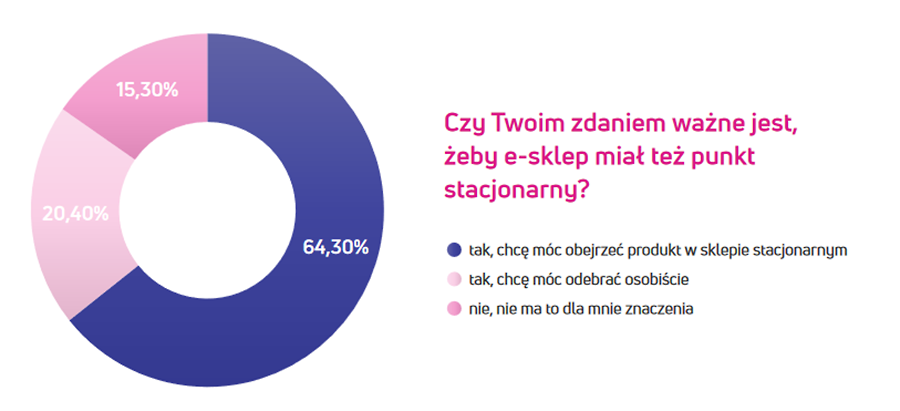 Aż 64% przepytanych klientów chciałoby mieć możliwość zobaczenia konkretnego produktu w sklepie stacjonarnym, a dla 20,4% istotna jest możliwość odbioru osobistego. Tylko dla 15,3% respondentów nie jest istotne, czy sklep działający w sieci ma również stacjonarną placówkę. Z badania wynika zatem, że Polacy raczej nieprędko porzucą zwyczaj odwiedzania galerii handlowych, choć rozwój e‑commerce sprawi, że sprzedawcy będą musieli się bardziej postarać, aby zdobyć zaufanie klienta.