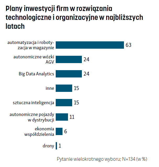 Według 75% nowe technologie będą decydowały o kondycji sektora, szczególnie automatyka i robotyka, choć tylko 62% zamierza w najbliższym czasie w takie rozwiązania inwestować.