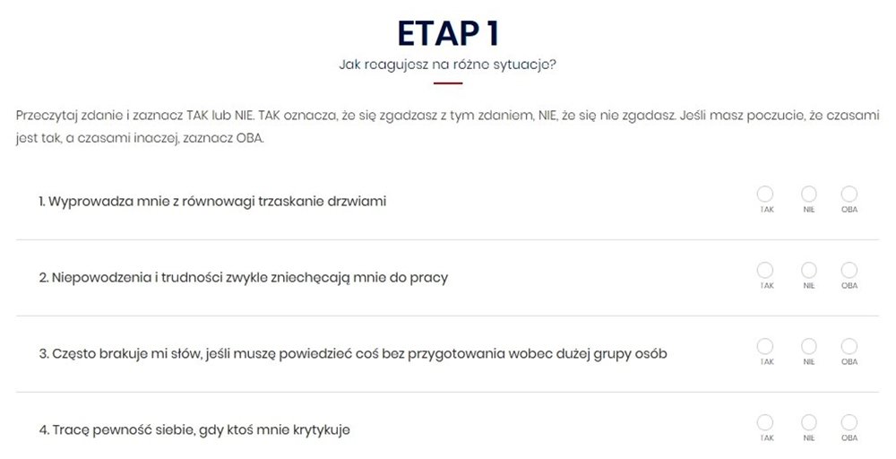 Indeks górny Zdjęcie 1: Przykłady pytań w pierwszym etapie testu osobowości CVP Dębowskiego. Źródło: https://adamdebowski.pl/test‑osobowosci/ Indeks górny koniecZdjęcie 1: Przykłady pytań w pierwszym etapie testu osobowości CVP Dębowskiego. Źródło: https://adamdebowski.pl/test‑osobowosci/