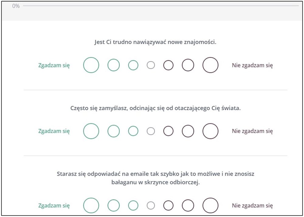 Indeks górny Zdjęcie 5: Przykłady pytań i skala ocen w teście MBTI. Źródło: www.16personalities.com Indeks górny koniecZdjęcie 5: Przykłady pytań i skala ocen w teście MBTI. Źródło: www.16personalities.com
