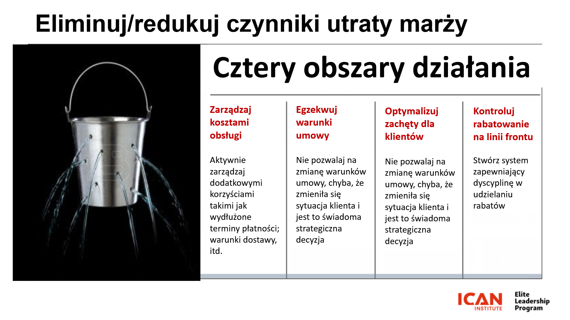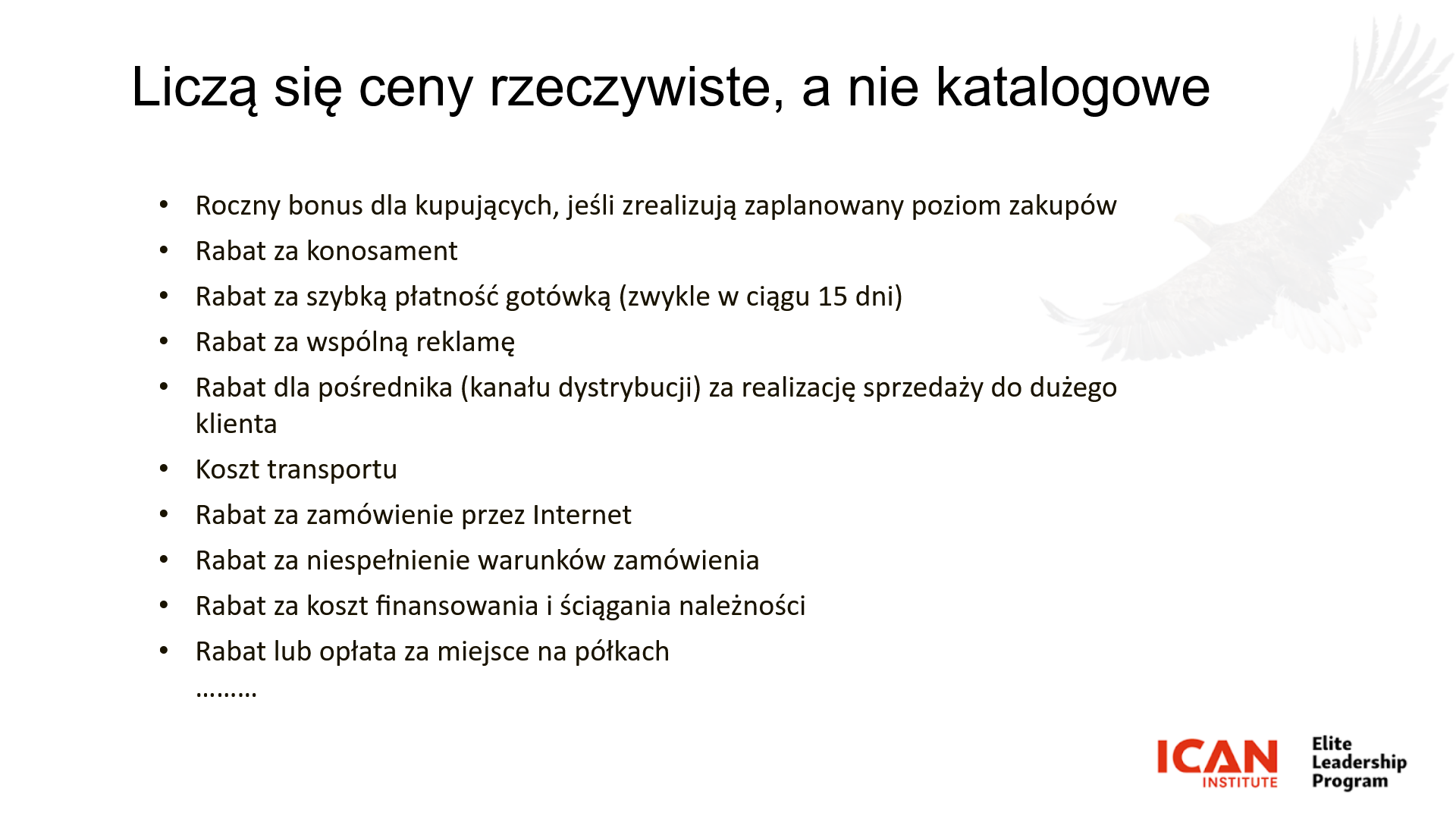 Warto pamiętać o tym, że na koniec dnia liczą się ceny rzeczywiste, a nie katalogowe! Tymczasem większość firm wykazuje w sprawozdaniach ceny fakturowe, podczas gdy różnice pomiędzy fakturowymi a faktycznymi („pocket price”) cenami transakcyjnymi mogą mieć bardzo niekorzystny wpływ na poziom zysku netto.