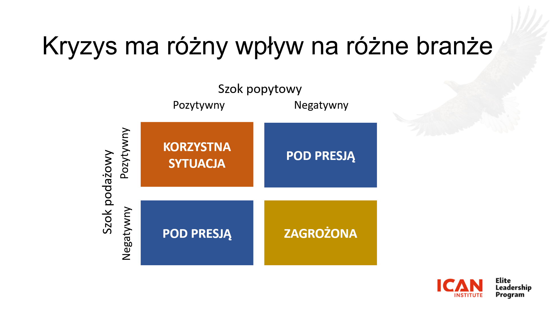 Kryzys w różnym sposób wpływa na różne branże. Niektórzy zyskują – inni tracą. Inaczej powinniśmy reagować, w zależności od tego, w której grupie jesteśmy i jaki wpływ mają na naszą organizację szoki podażowe i popytowe.
