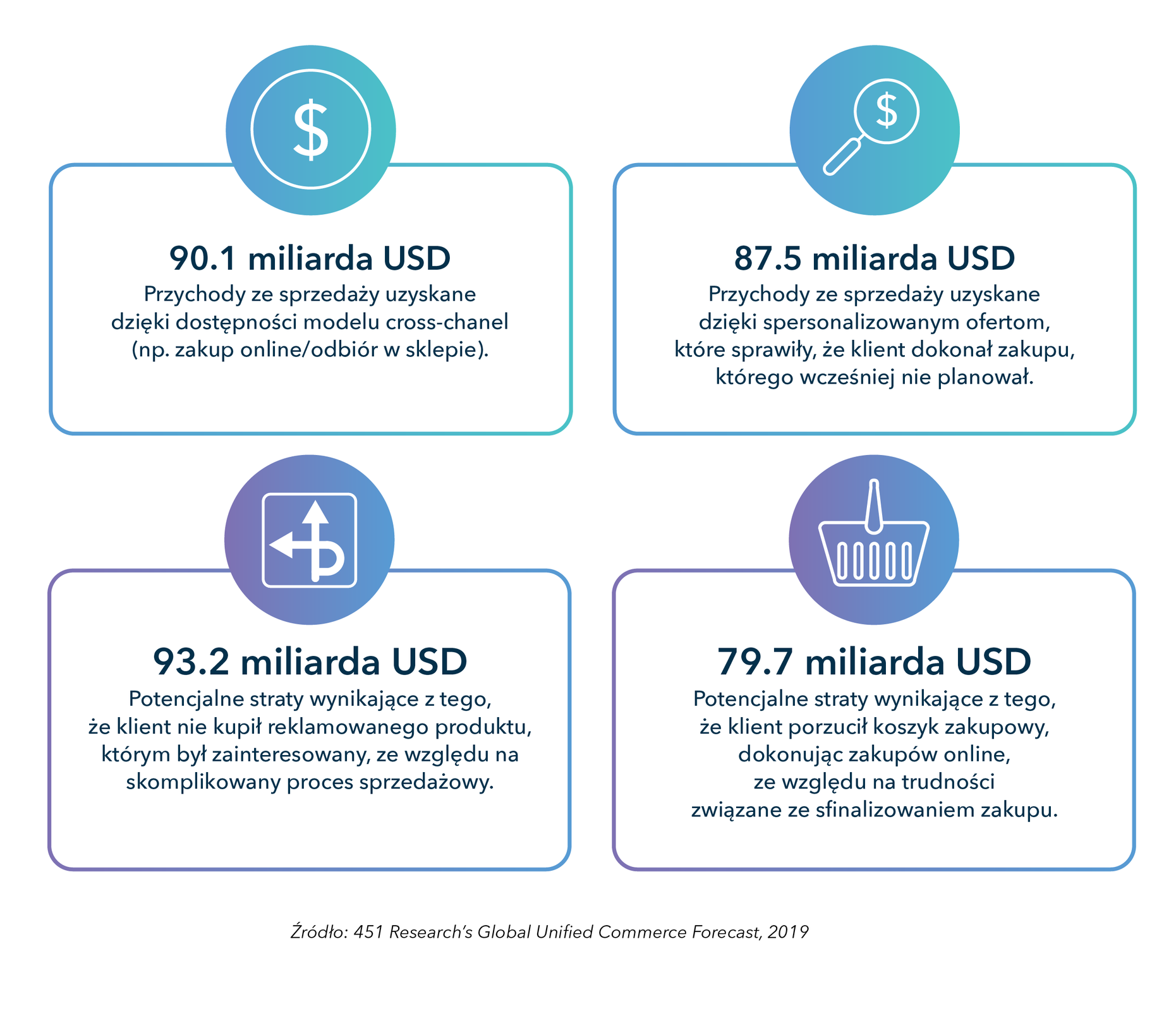 Dzisiejsza rzeczywistość to nowe możliwości, ale też potencjalne pułapki. Zgodnie z badaniem wykonanym przez 451 Research’s Global Unified Commerce, w 2019 roku potencjał wynikający z personalizowanego podejścia do budowania doświadczenia klienta mierzony jest globalnie w miliardach dolarów! Jednocześnie analiza wskazuje, że potencjalne straty są równie duże, a granica między sukcesem a porażką jest identyfikowana poprzez właśnie umiejętność zrozumienia zachowania klienta – mierzonego na poziomie pojedynczych zdarzeń transakcyjnych czy behawioralnych, układających się w łańcuch ich sekwencji i kombinacji.
