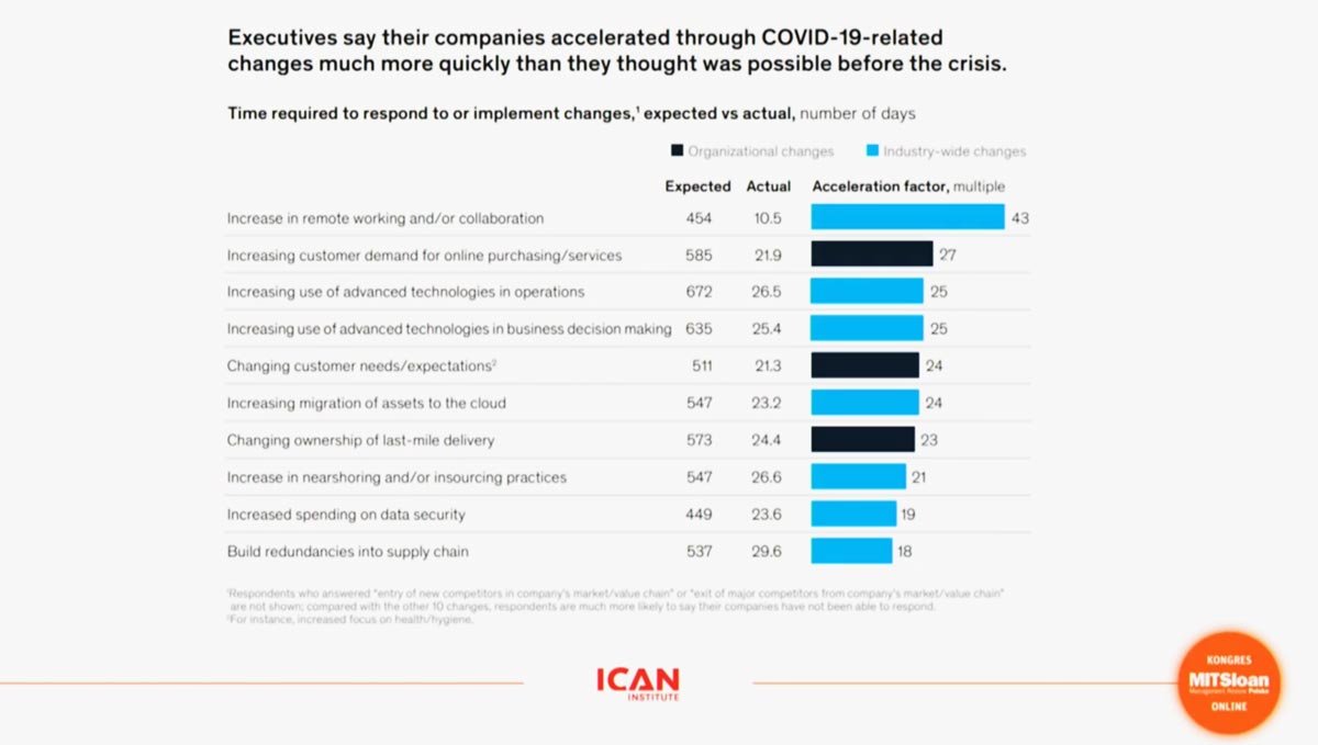 „Na zeszłorocznym Kongresie zapowiadałem, że tylko technologia może nas uratować. Technologia miała wyzwalać energię i produktywność, rozwiązać wiele naszych problemów. Dziś natomiast możemy powiedzieć, że te problemy nie zostały jeszcze rozwiązane – wręcz przeciwnie, COVID‑19 jeszcze wiele z nich wyostrzył. Natomiast w krótkiej perspektywie technologia już nas uratowała.”