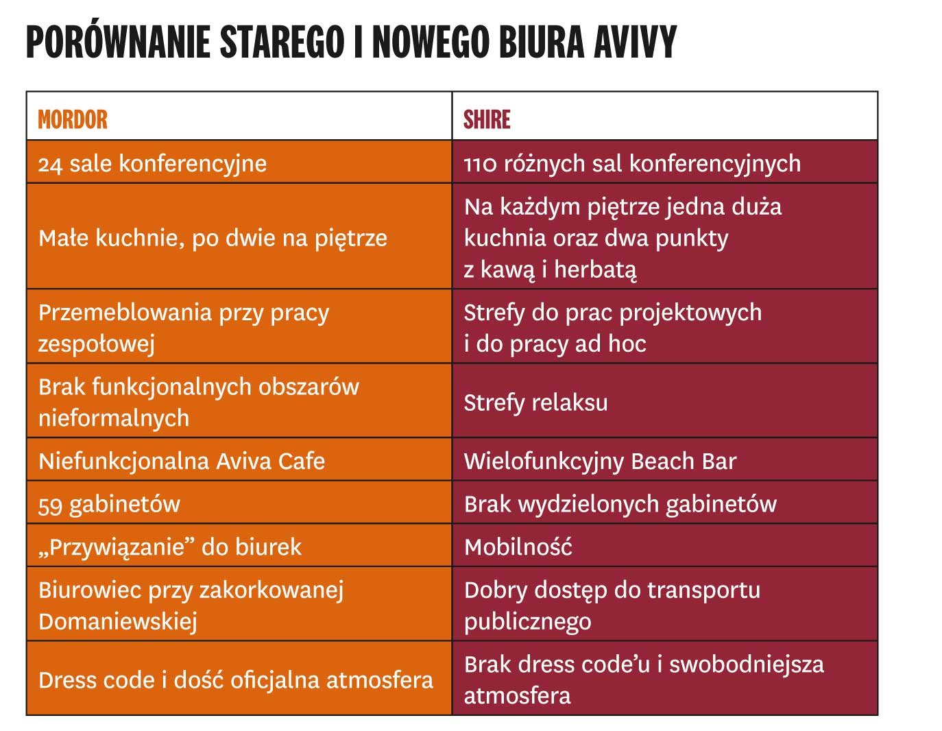 Jeszcze dwa lata temu pracownicy Avivy dojeżdżali do nieciekawego biura na warszawskim zakorkowanym Służewcu, co z samego rana potrafiło zepsuć nastrój na cały dzień. By ożywić organizację, poprawić atmosferę i motywację, firma zdecydowała się na przeprowadzkę do nowego centrum biznesowego przy Dworcu Gdańskim. Oznaczało to również zmianę kultury organizacyjnej i dostosowanie biura do aktualnych i przyszłych potrzeb pracowników.