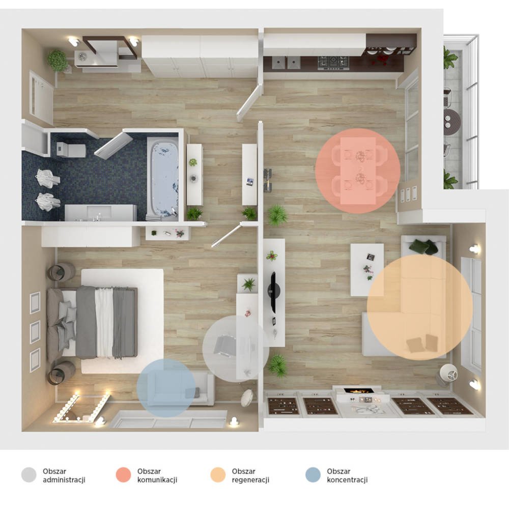 Podzielenie domu na obszary aktywności w praktyce wcale nie jest takie trudne. Można zacząć np. od jedzenia posiłków. Oderwijmy się od pracy, by spokojnie i uważnie zjeść obiad, wyjdźmy na balkon i dajmy sobie czas na nabranie sił w swojej strefie regeneracji. Nieodłącznym elementem pracy zdalnej są wideokonferencje. I w tym przypadku możemy wyznaczyć sobie strefę do komunikacji, np. fotel z którego będzie prowadzić rozmowy online.