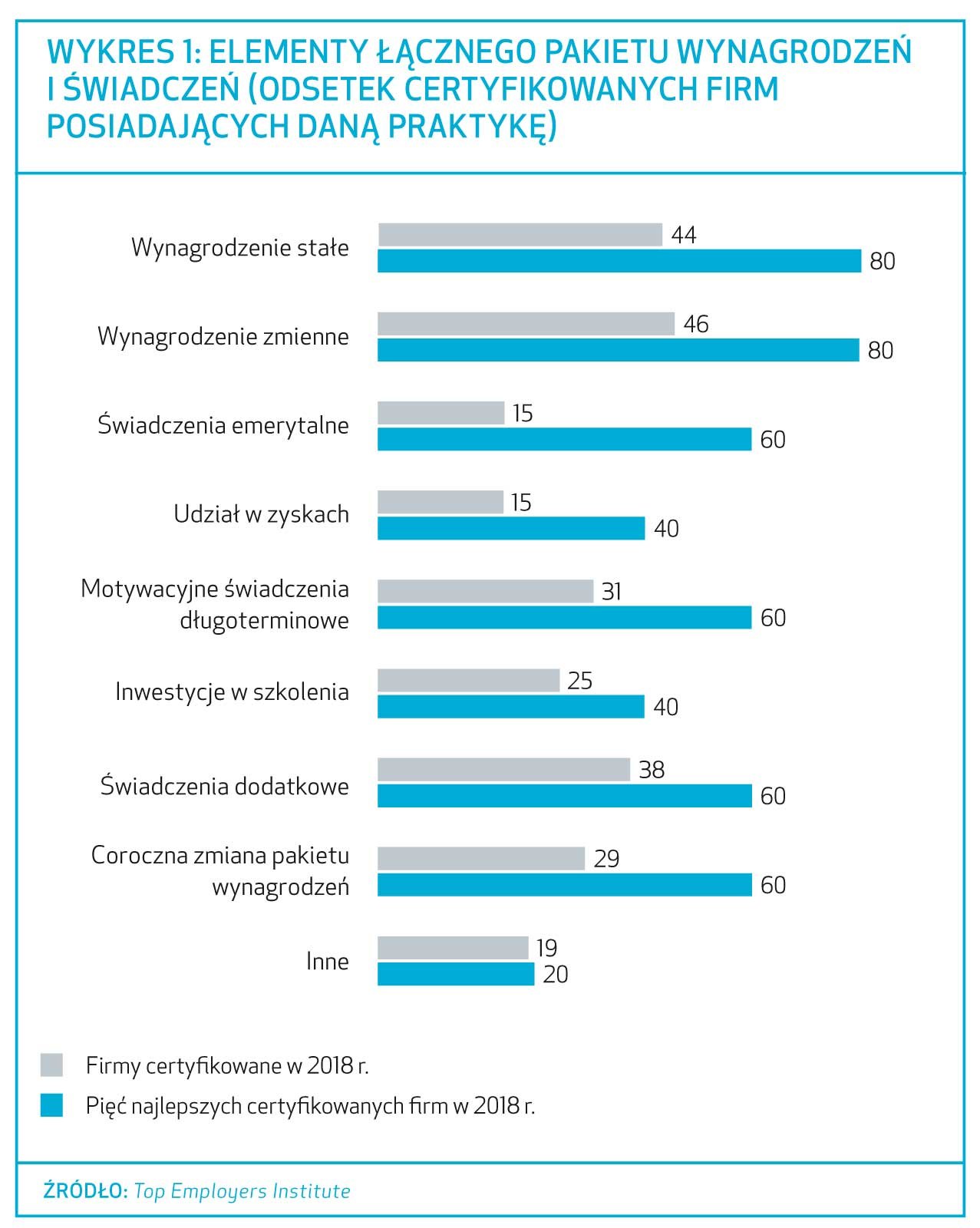 Przejrzyste zestawienie informacji o wynagrodzeniach oraz świadczeniach jest szczególnie ważne dla organizacji, które chcą przyciągnąć i zatrzymać talenty. Dlatego coraz więcej przedsiębiorstw w Polsce decyduje się na tworzenie tzw. Total Reward Statement, czyli informacji dotyczących łącznego pakietu wynagrodzeń oraz świadczeń. W 2018 roku 29% badanych firm w Polsce przyznało, że tworzy takie rozwiązanie dla wszystkich pracowników, podczas gdy w 2017 roku tylko 19% (zobacz wykres nr 1). Zaawansowana technologia pozwala na wygenerowanie dokumentu, który nie tylko informuje pracownika o jego wynagrodzeniu podstawowym, zmiennym oraz dodatkowym, ale ukazuje wartość oferowanych benefitów czy inwestycji w szkolenia.