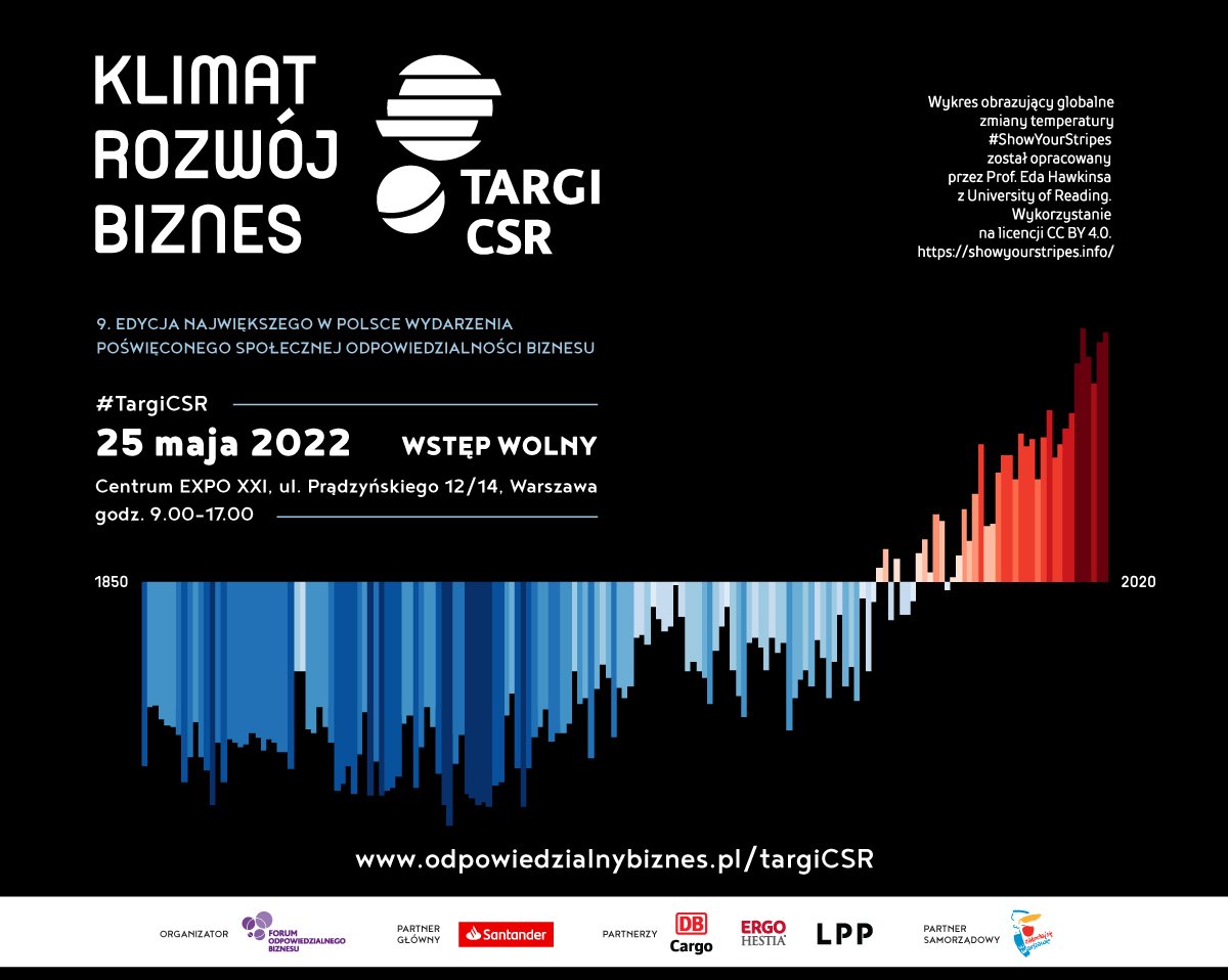 W środę 25 maja EXPO XXI Warszawa stanie się polskim centrum odpowiedzialnego biznesu. Prezentacja firm w obszarze zrównoważonego rozwoju, raporty z działań na rzecz klimatu, lokalnych społeczności czy różnorodności – to tylko część programu. Wstęp na 9. Targi CSR jest bezpłatny.