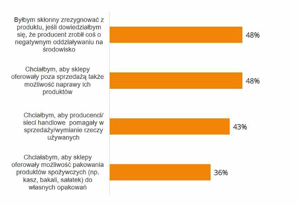 Według badania IBRiS, 78% Polaków uważa, że odnawialne źródła energii przyczyniają się do ochrony klimatu. Z kolei z badania „Konsumenci a gospodarka obiegu zamkniętego”, przeprowadzonego przez ARC Rynek i Opinia oraz Forum Odpowiedzialnego Biznesu wynika, że co drugi klient zwraca uwagę na zachowania ekologiczne firm i gotowy byłby zrezygnować z danego produktu, gdyby dowiedział się, że producent zrobił coś, co miało negatywny wpływ na środowisko