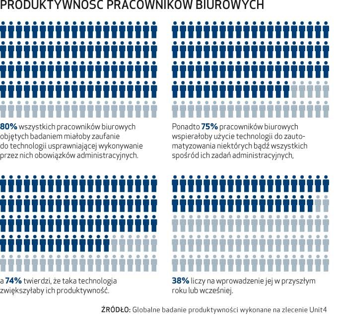 W polskich organizacjach przy dokonywaniu zmian związanych z automatyzacją często korzysta się z systemu ERP. Z badania przeprowadzonego przez firmę Software Advice (Gartner) wynika, że zarówno 54% firm, jak i użytkowników systemu jest niezadowolonych z swojego systemu ERP. Może to wynikać z tego, że system jest nieintuicyjny i prezentuje inny poziom niż aplikacje konsumenckie, z których na co dzień korzystają pracownicy organizacji. Dlatego firmy powinny dopasować aplikację do konkretnych potrzeb firmy. Zmiany, jakie można dostrzec na rynku, inspirują takie firmy jak Unit4 Polska, które poprzez swoje produkty chcą pokazać, że można nadążyć za oczekiwaniami najbardziej wymagających klientów i ich pracowników. Unit4 Polska stworzyło aplikację self‑driving ERP, pozwalającą użytkownikom zwiększyć komfort pracy przy użyciu aplikacji.