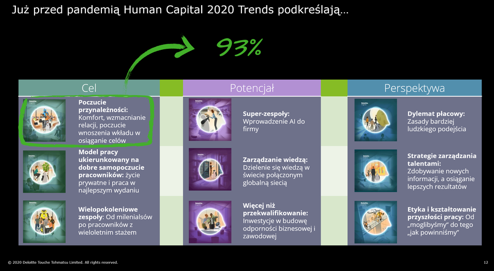 Pandemia uświadomiła pracownikom i menedżerom jak istotne jest poczucie przynależności, na co zwraca uwagę 93% ankietowanych.