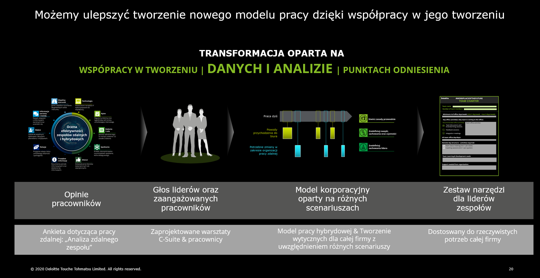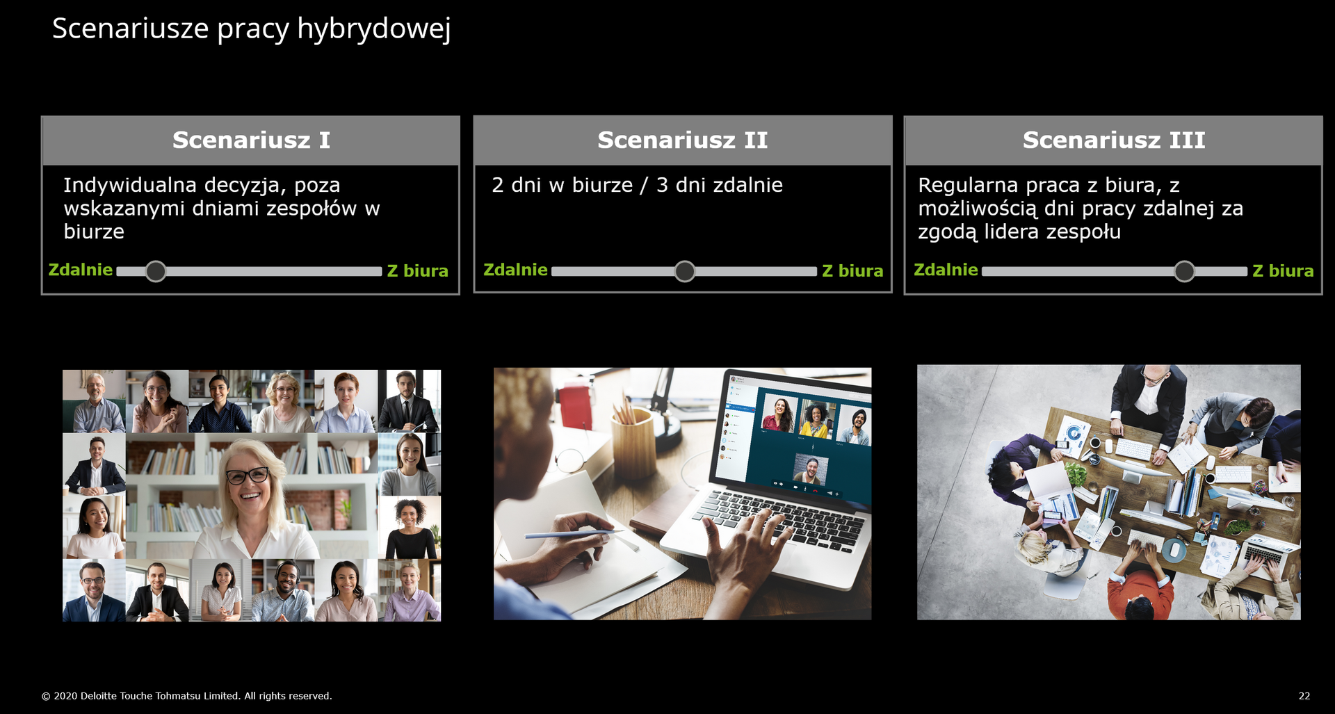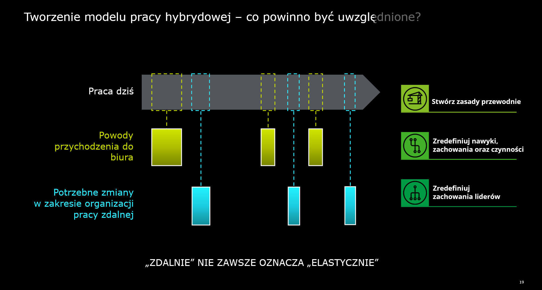 Wprowadzenie nowego modelu pracy hybrydowej wymaga nowych narzędzi. Istotne są takie aspekty jak utrzymać łączność z pracownikami pracującymi zdalnie. Kluczowym elementem jest też tworzenie bardzo angażującego środowiska pracy. Pracownik powinien mieć pełne doświadczenie przebywania w pracy. Bardzo ważnym rozwiązaniem są przekazy wideo.