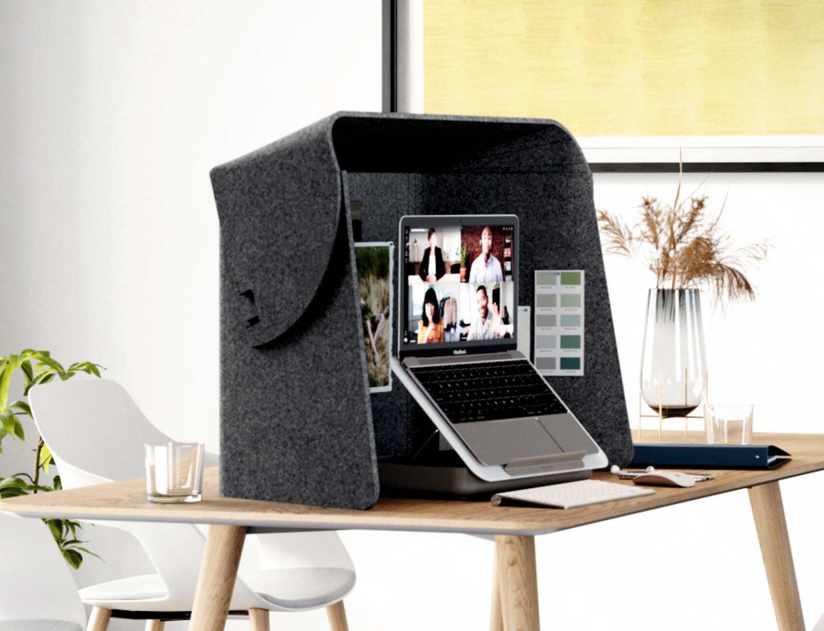 Jeśli stół w jadalni lub w kuchni ma zamienić się w profesjonalne biurko, wówczas konieczna jest nadstawka pomagająca w skupieniu, zapewniająca dobrą widoczność ekranu i prywatność, zmniejszająca hałas podczas rozmów telefonicznych i wideokonferencji oraz jasno sygnalizująca, że jesteśmy teraz w trakcie pracy. Takie osłony mocowane do stołu umożliwiają nawet pracę na laptopie na tarasie czy balkonie. Szczególnie sprytne są modele, które pozwalają na przełączanie się między siedzeniem a staniem, a które po pracy można złożyć do kompaktowych rozmiarów, schować razem z przyczepionymi notatkami i wygodnie przechowywać np.: w szafie. Takie rozwiązania zapewniają również większą koncentrację i wizualne „bezpieczeństwo danych” podczas podróży lub w zdecentralizowanej przestrzeni coworkingowej.