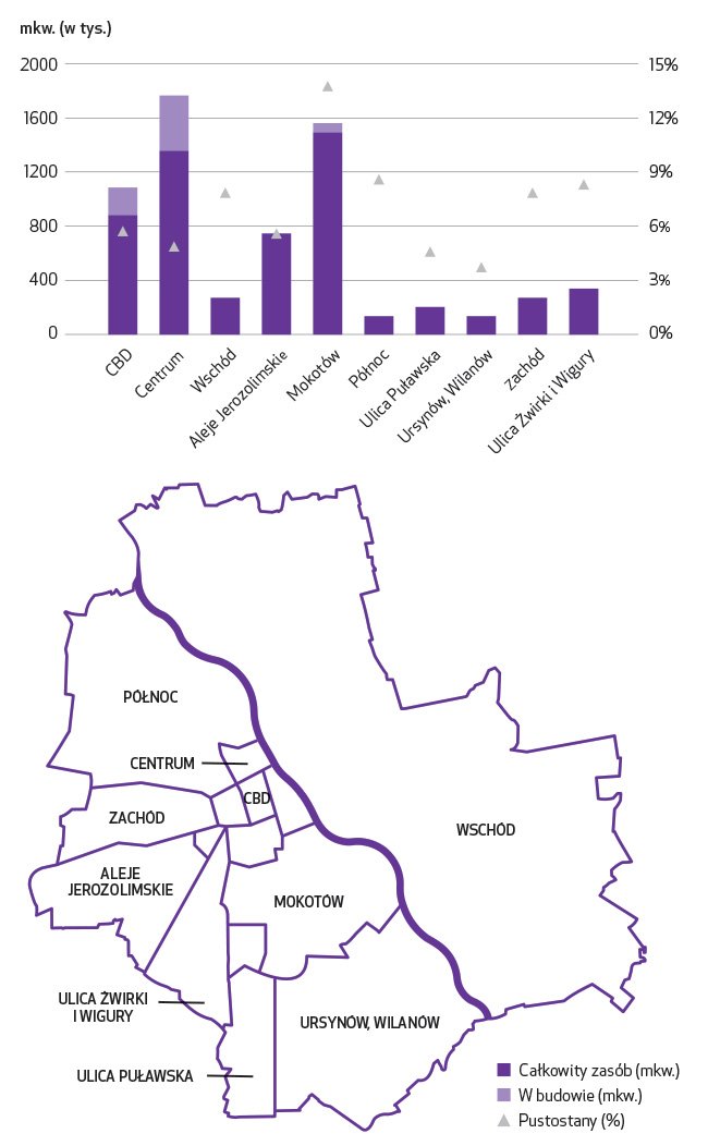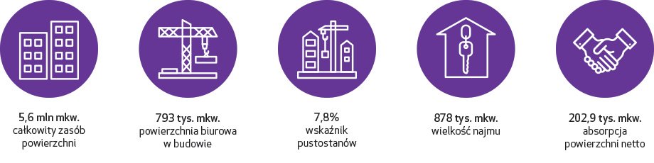 Od kilku lat wielkość przestrzeni biurowej w największych polskich miastach konsekwentnie biła kolejne rekordy. Zarówno pod względem całkowitej powierzchni (co akurat jest oczywiste), jak też liczby i wartości transakcji, oddawanych czy rozpoczynanych inwestycji. Całkowite zasoby nowoczesnej powierzchni biurowej na koniec 2019 roku wyniosły w Warszawie 5,6 miliona mkw. W ciągu minionego roku w stolicy przybyły 162 tysiące mkw. w 17 nowych budynkach. Na dodatek w dalszym ciągu branża szybko się rozwija. Pod koniec minionego roku w całym mieście w budowie były 793 tysiące mkw., z czego ponad połowa (437 tysięcy mkw.) zostanie oddana w roku 2020. Będą to m.in. budynki wysokościowe takie jak The Warsaw HUB czy Widok Towers. Savills, jedna z najbardziej znanych firm doradczych działających na rynku nieruchomości, wylicza, że w ubiegłym roku wynajęto łącznie 878 tysięcy mkw., co jest rekordowym wynikiem dla stolicy. „Obecnie wskaźnik pustostanów w Warszawie wynosi niespełna 8%, co jest bardzo niskim wynikiem. Świadczy on o utrzymującym się zainteresowaniu najemców powierzchnią biurową – wyjaśnia Daniel Czarnecki, dyrektor działu powierzchni biurowych, reprezentacja wynajmującego, Savills. – W Warszawie cały czas powstają kolejne projekty, tworzą się też nowe zagłębia biurowe. Obecnie olbrzymi plac budowy obserwujemy przy rondzie Daszyńskiego, a w przyszłości podobny rozwój może czekać okolice ronda Radosława”.