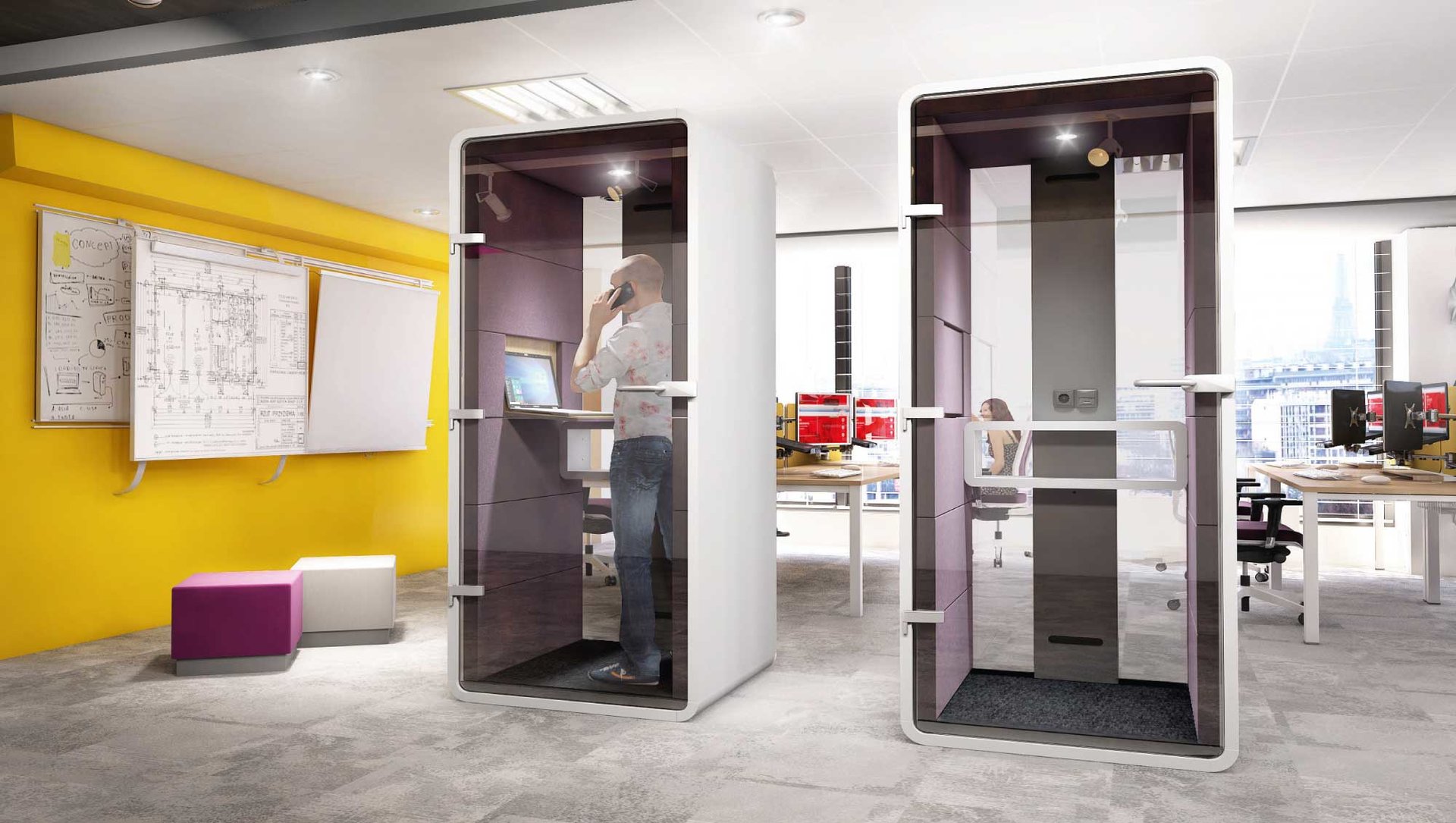 Ergonomia i prywatność są z naszego punktu widzenia jednymi z najczęstszych i kluczowych potrzeb, jakie zgłaszają pracownicy. W odpowiedzi na nie opracowaliśmy szereg nowoczesnych systemów wyposażonych w funkcje akustyczne, jak np. Hush Phone, zaprojektowany na wzór budki telefonicznej. Pozwala on nie tylko na swobodną, niczym niezakłóconą rozmowę, ale i wpływa na zmniejszenie hałasu w otwartej przestrzeni. Mobilne izolatory akustyczne zwiększają komfort pracy, odgradzając rozmówcę od bodźców zewnętrznych, dlatego tak dobrze sprawdzają się w biurach, gdzie w jednym miejscu przebywa wielu pracowników.