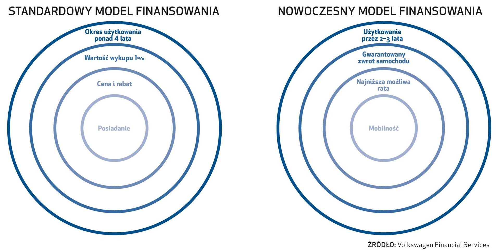 Badania Volkswagen Financial Services potwierdzają, że mobilność, jaką daje samochód, przestaje być kwestią przywiązania do auta jako inwestycji na lata. Jest to zwłaszcza widoczne wśród przedstawicieli młodszych pokoleń. Pojazd traktują jako jedno z narzędzi ułatwiających życie i pracę. W Polsce, śladem zachodniej Europy, coraz więcej klientów korzysta z aut w leasingu lub kupuje je na kredyt z rynkową wartością końcową, płacąc za swobodne użytkowanie samochodu w określonym czasie (najczęściej 3–4 lata). Nabywcy doceniają zalety takich produktów, tym bardziej że mają możliwość wyboru lepszego (lub nawet wyższego) modelu danej marki w ramach umiarkowanych miesięcznych rat.