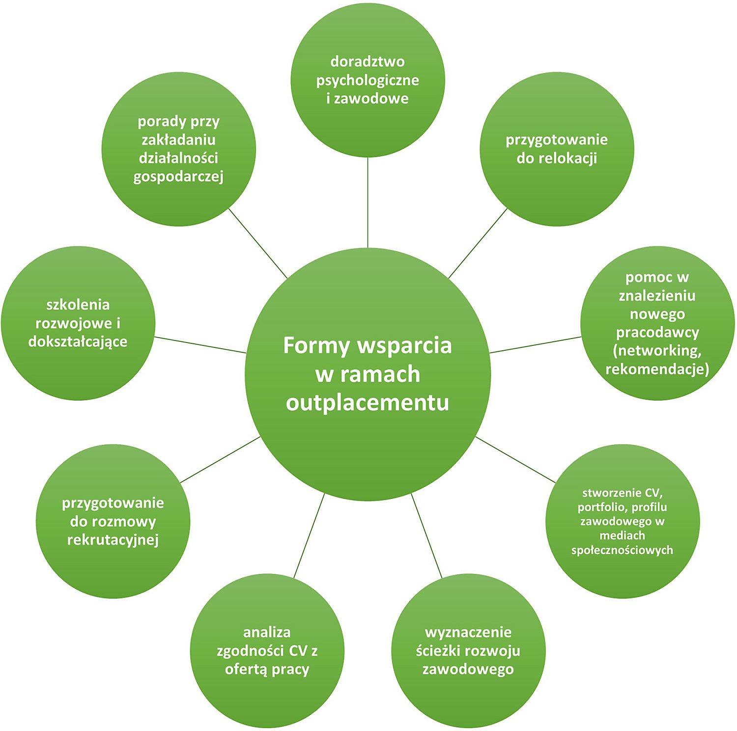 Indeks górny Formy wsparcia w ramach programów outplacementowych (źródło: opracowanie własne autora) Indeks górny koniecFormy wsparcia w ramach programów outplacementowych (źródło: opracowanie własne autora)
