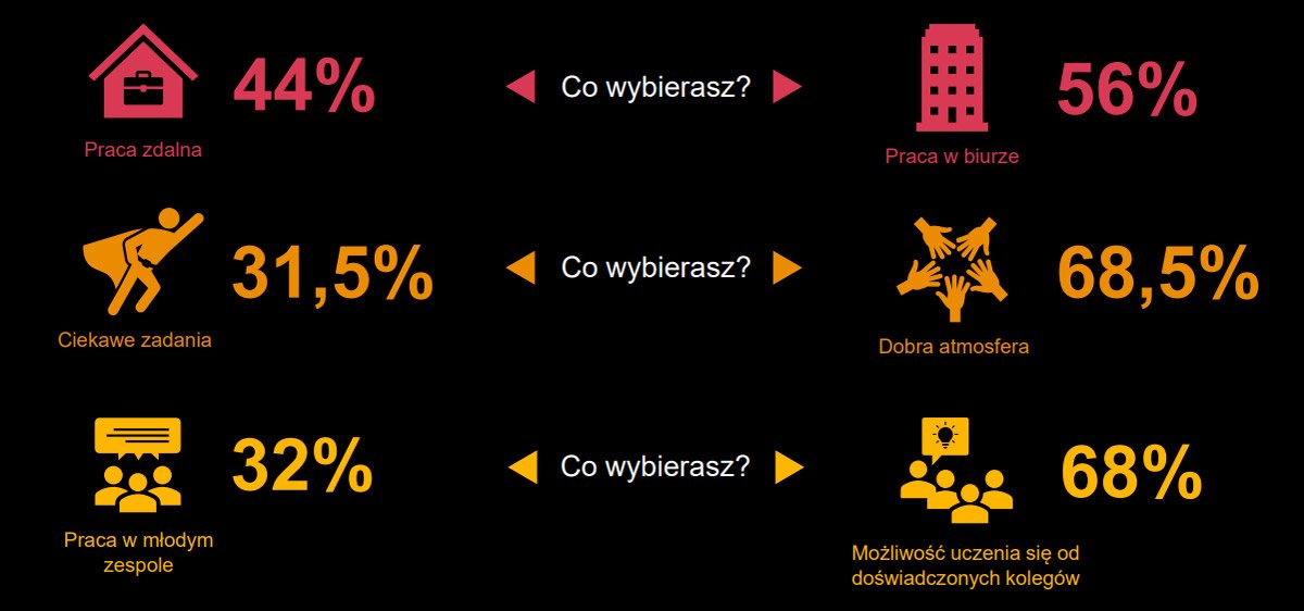 Najchętniej praca w biurze, ale zwolenników pracy zdalnej również jest dużo