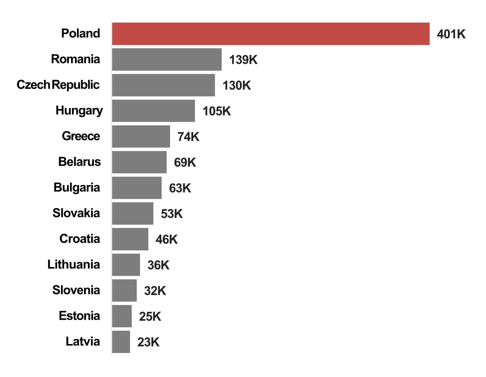 Nie ulega zatem wątpliwości, że na wysoki potencjał rynku innowacji w Polsce wpływa wykształcona kadra techniczna. Bo to właśnie w kraju, według danych PFR, znajduje się najwięcej wykwalifikowanych programistów. Potwierdzają to również inne źródła. Według „HackerRank” polscy specjaliści IT zajmują 3. miejsce pod względem sukcesów w popularnych konkursach programistycznych i 5. miejsce w statystykach „TopCoder Country Ranking”. Natomiast w „2018 Developer Skills Report” Polskę można znaleźć na 4. miejscu z 7,7% programistów, którzy zaczynają kodować w wieku 5‑10 lat.