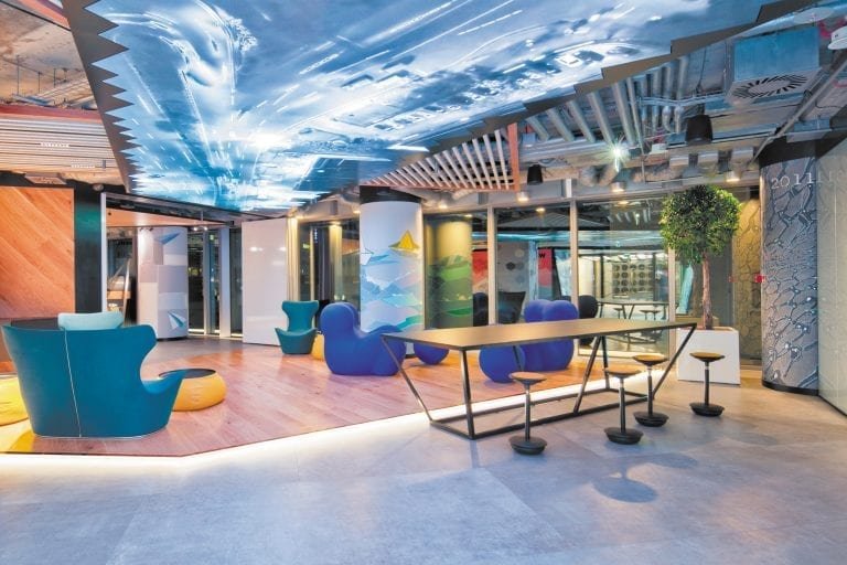 Warszawski wavespace to jednak nie tylko otwarta i elastyczna przestrzeń. To również audytorium z trybuną i kilkumetrowym ekranem dotykowym, strefa relaksu oraz laboratoria internetu rzeczy (IoT) oraz cyberbezpieczeństwa. To również szereg zsynchronizowanych ze sobą, nowoczesnych rozwiązań technologicznych wspierających efektywność pracy. Dobrym przykładem mogą być szeroko wykorzystywane w przestrzeni wavespace ekrany dotykowe oraz oprogramowanie Mural, pozwalające na szybkie i łatwe tworzenie wizualizacji poszczególnych wyzwań oraz współpracę nad opracowywaniem rozwiązań. Taka współpraca może się odbywać zarówno na miejscu, wśród członków jednego zespołu pracujących przy jednym ekranie, jak i w czasie rzeczywistym wiele zespołów może współpracować w jednej lokalizacji lub wielu lokalizacjach rozproszonych geograficznie. Dzięki tym narzędziom klienci EY, do których należą między innymi wielkie międzynarodowe organizacje, mogą interaktywnie pracować nad tym samym zagadnieniem i prezentować plany, projekty czy analizy swoim zespołom rozsianym po całym świecie. W ten sposób praca, która wcześniej była niejednokrotnie rozciągnięta na przestrzeni tygodni lub miesięcy, może zostać wykonana w ciągu nawet jednego spotkania dzięki wykorzystaniu globalnej sieci połączonych ze sobą biur wavespace.