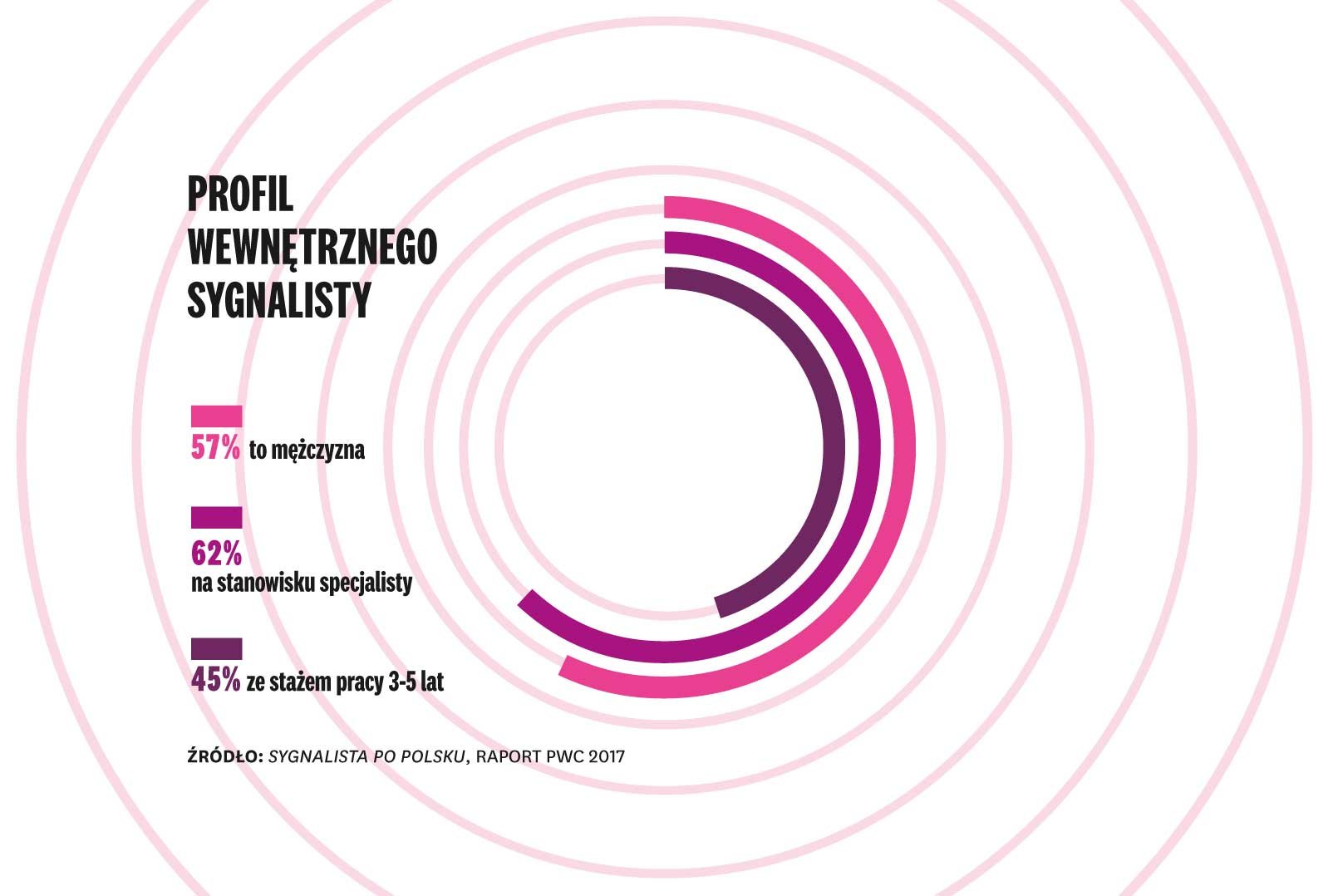 Na podstawie ponad 300 przeprowadzonych przez PwC projektów o tematyce śledczej w ciągu ostatnich kilkunastu lat został sporządzony profil sygnalisty. Jest nim osoba z krótkim stażem pracy w organizacji, zazwyczaj zajmująca stanowisko specjalisty. Taki pracownik jest już emocjonalnie związany z firmą, ale nie pełni jeszcze funkcji decyzyjnych. Osoby te nie muszą pracować w przedsiębiorstwie. Istotne jest, iż sygnalistą może być również osoba spoza firmy, czyli dostawca bądź kontrahent.