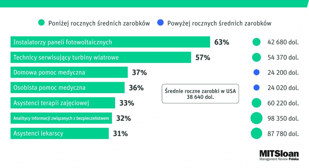 Jeśli ktoś szuka pracy, myśli o jej zmianie lub tylko chce rozszerzać swoje kompetencje, powinien zainteresować się jednym z trzech obszarów rynku pracy. Są to zawody związane ze świadczeniem szeroko rozumianych usług medycznych lub też – nadal ważną i nadal dobrze opłacaną – branżą IT. Co ciekawe, na pierwszym miejscu wśród zawodów, w których przewidywany jest największy wzrost zatrudnienia w ciągu najbliższych 10 lat, są jednak rodzaje działalności związane z obsługą rozwiązań z zakresu odnawialnych źródeł energii (OZE).